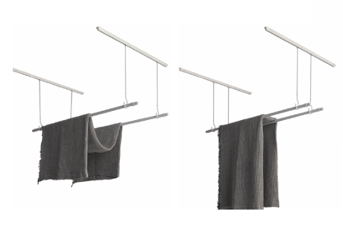 干した後は天井近くまで上げて空間を広くするといった使い方もできます。