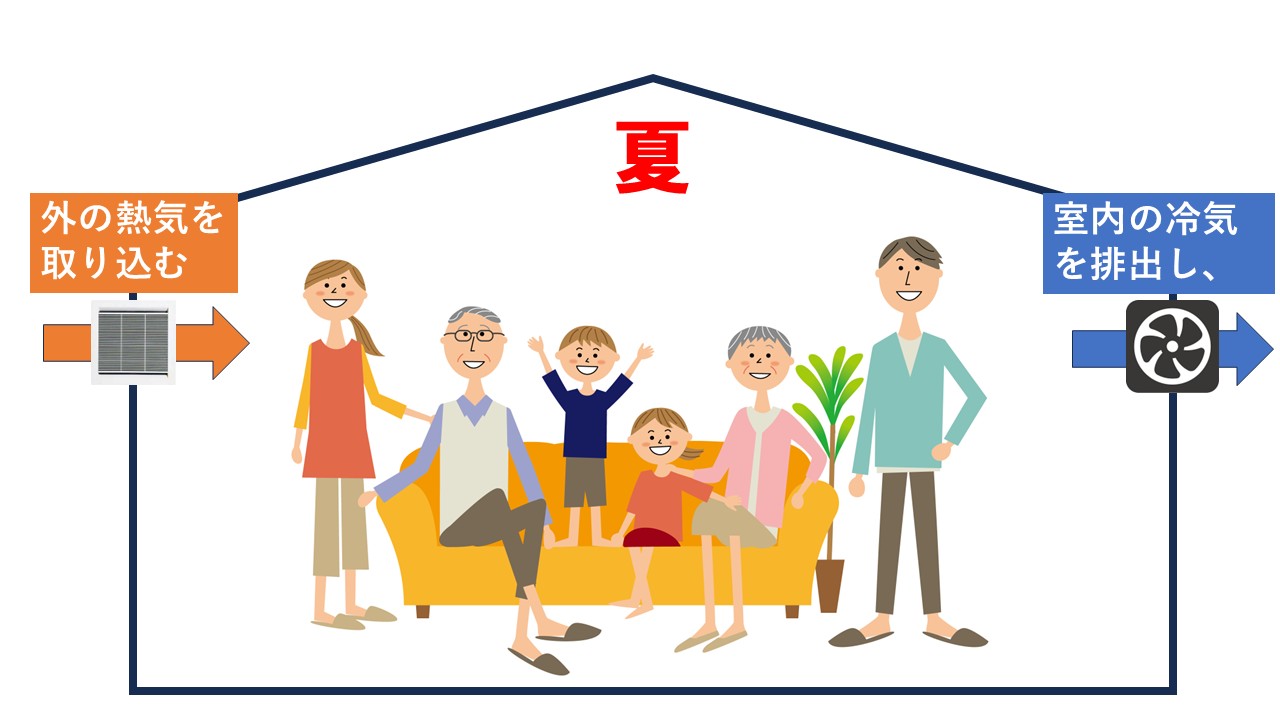 これは、真夏なら、せっかく冷やした室内の冷気を換気扇で外に吐き出し、35℃前後の熱い空気をそのまま室内に取り込むことになります。