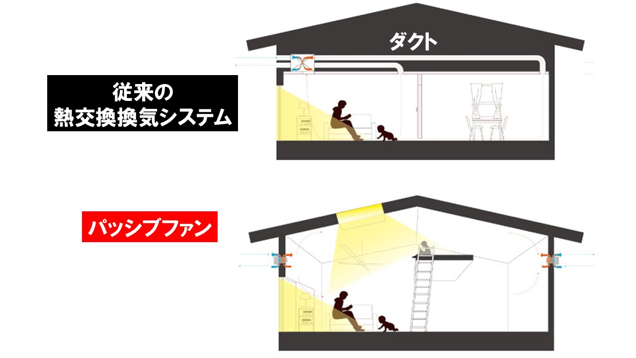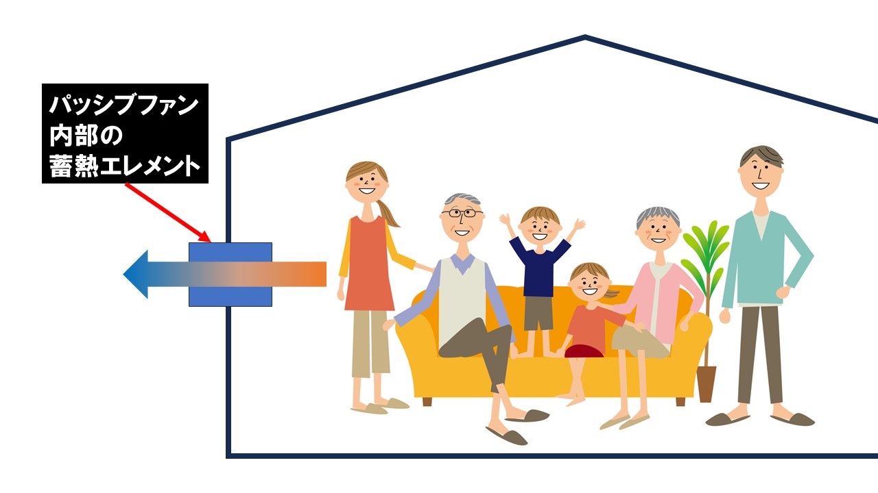 パッシブファンは、換気扇の内部に蓄熱エレメントを装着して、室内の温度を快適に保つ仕組みです。