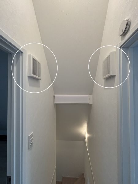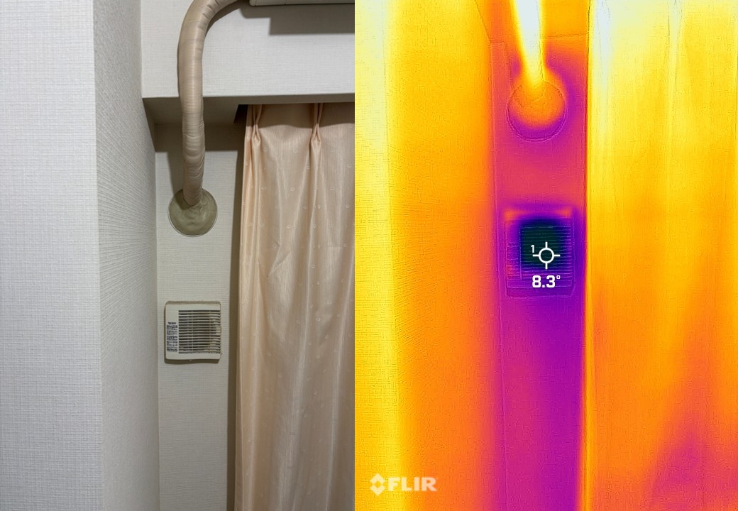 参考までにこちらは、熱交換しない換気扇。外気の寒い空気をそのまま取り込んでいます。