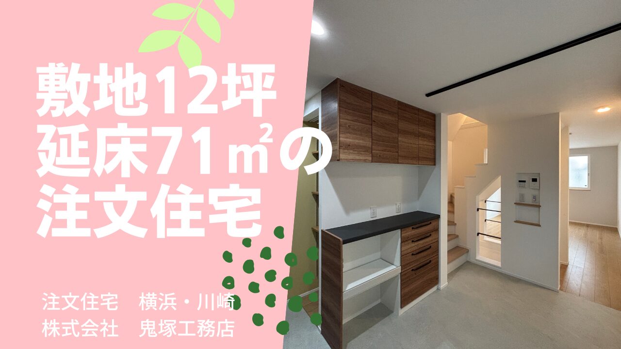12坪の敷地に建てた延床71㎡の3階建て注文住宅です。