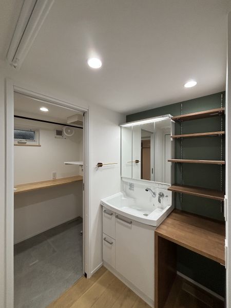 起床時や就寝前に加え、帰宅時にも、トイレの後にも使えるよう、オープンスペースに。