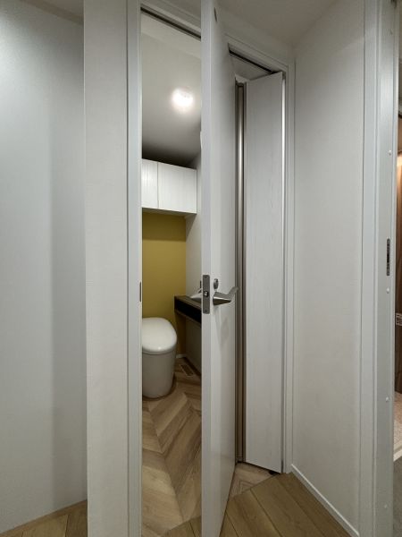 その隣の脱衣室兼ランドリールームとは引き戸で仕切っています。