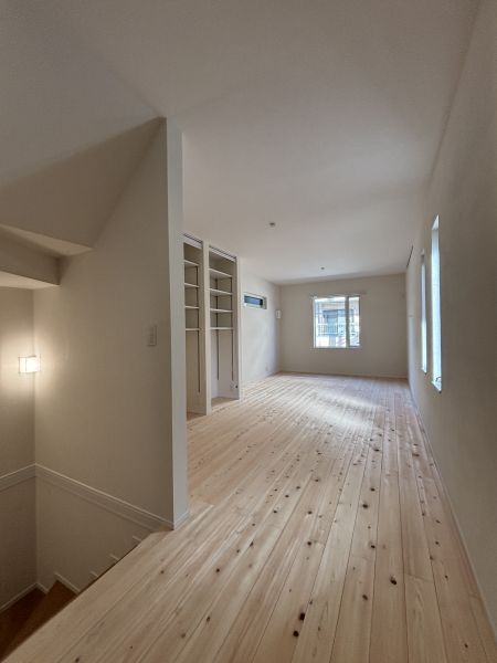新築特有のニオイを好まれないということで、床は無垢のひのき、壁は漆喰で仕上げています。