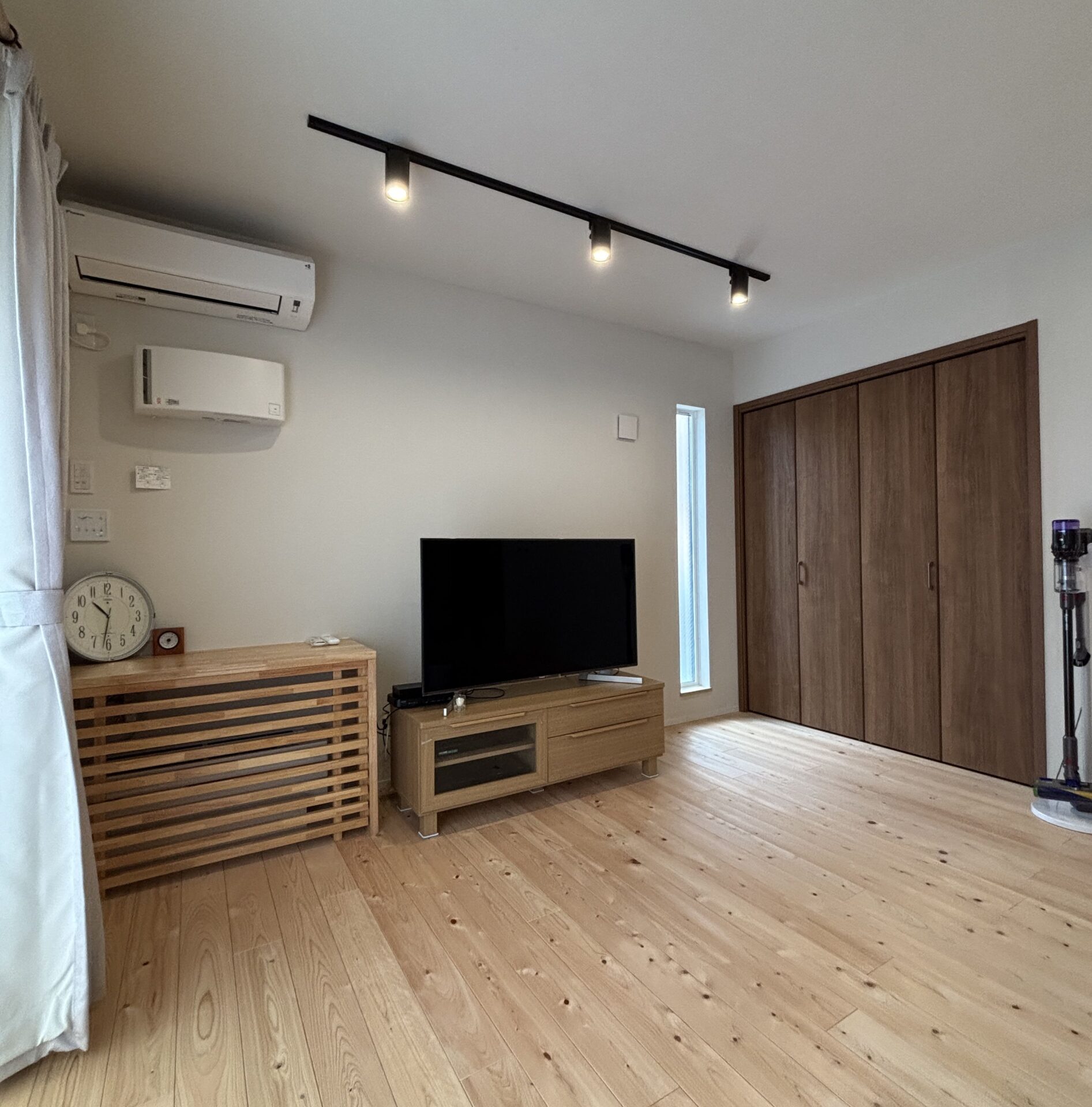 エアコンは、階段室に1台、リビングに1台と、息子が「俺の部屋には、つけてくれ」というので、3台つけました。