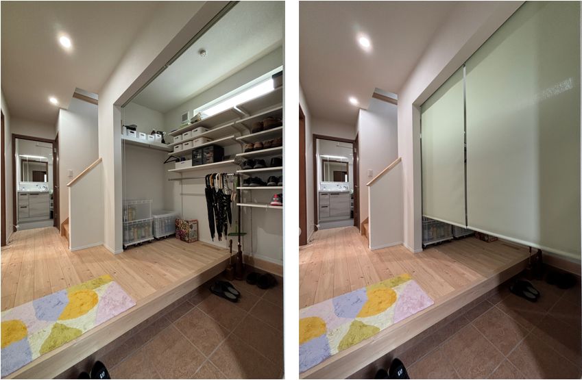 隠したいときだけロールスクリーンで閉ざせるので、便利です。