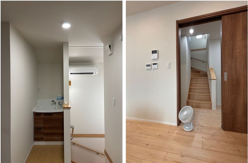 2階の各部屋には、壁にエアパスをつけていて、ホールから冷気を取り込んでいます。